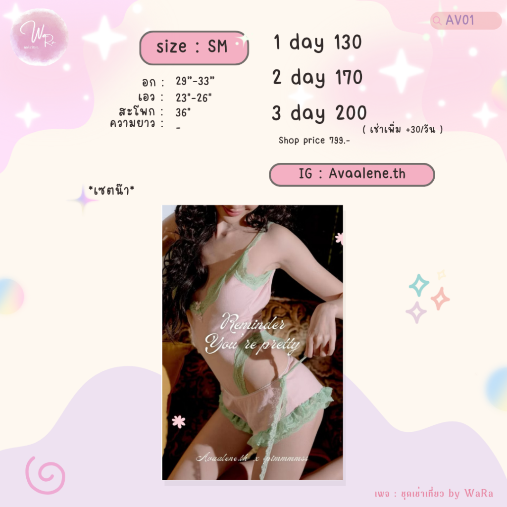 สายดี่ยวที่คุณพิมชูสสส!! ดีไซน์เสริมลูกไม้เพิ่มความเซ็กซี่ปกคิ้วท์ๆ เนื้อผ้าร่องกระชับตามตัวให้หุ่นโซ๊ะ แต่งลูกไม้ ทรง High cut เว้าสูงโชว์เอวเอสแบบสับ! รับรองว่าต้องกรี๊ดดด สายปรับความสั้น-ยาวได้ตามสัดส่วน นิ่มมากไม่คัน